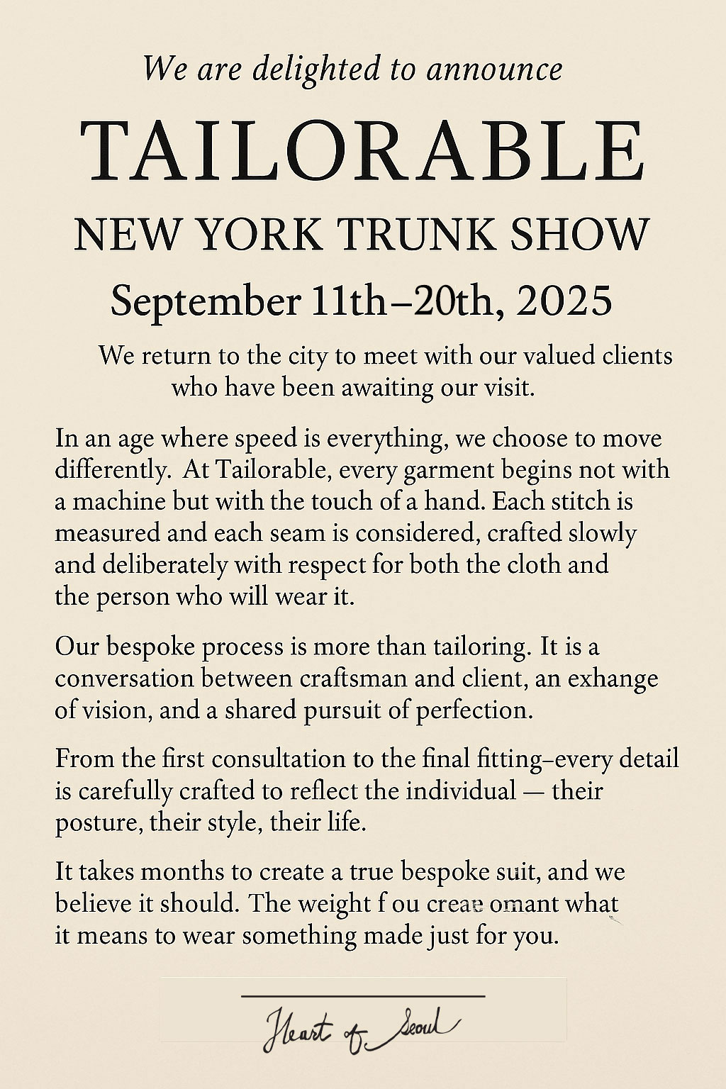 We are delighted to announce Tailorable’s trunk show in New York,