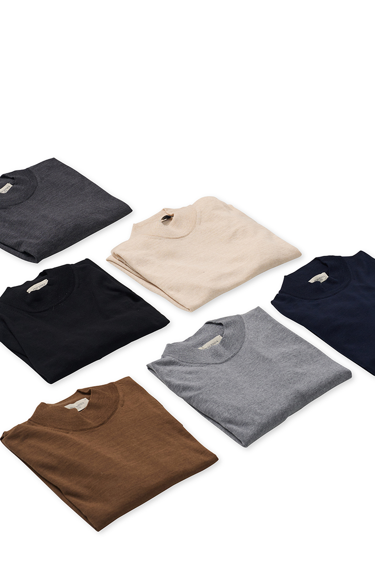 테일러블 과 피아센자 캐시미어가 개발한 목-터틀넥을 만나보세요.