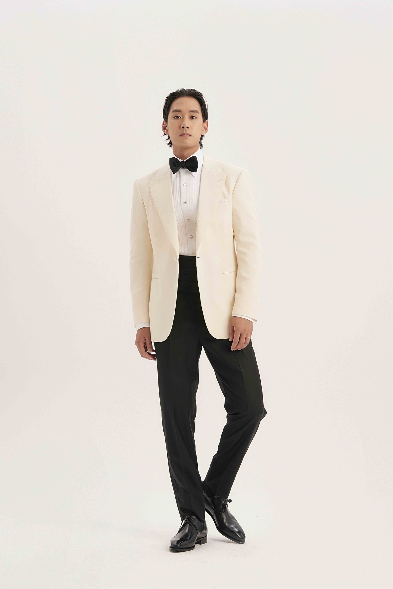 1. 화이트 턱시도 (숄 칼라 또는 피크 라펠 디자인 선택 가능)