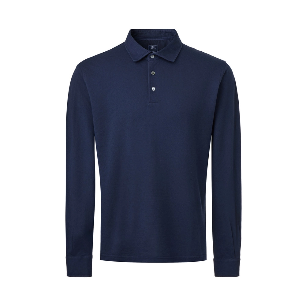 This long sleeve polo by FEDELI offers the composed appearance of a shirt with the relaxed comfort of jersey knitwear.